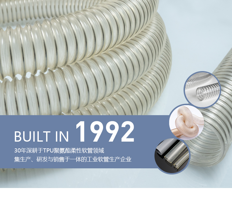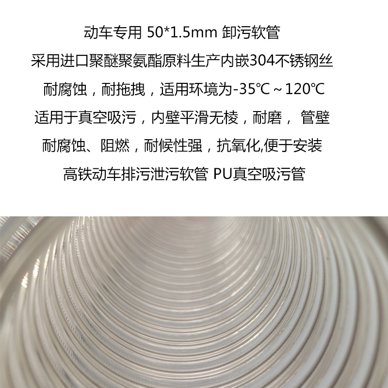 產(chǎn)品特點:材料特性:優(yōu)質(zhì)聚氨酯原料,內(nèi)嵌銅鋼絲加工而成,耐磨性能優(yōu)越,可達PVC軟管的5-10倍。產(chǎn)品應用:適用空間狹小或活動頻繁的工業(yè)除塵設(shè)備、通風設(shè)備等。如:粉塵、木屑、纖維碎屑、油蒸汽、焊煙等。